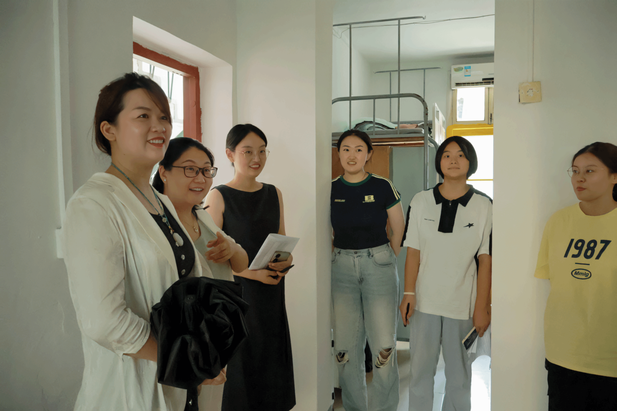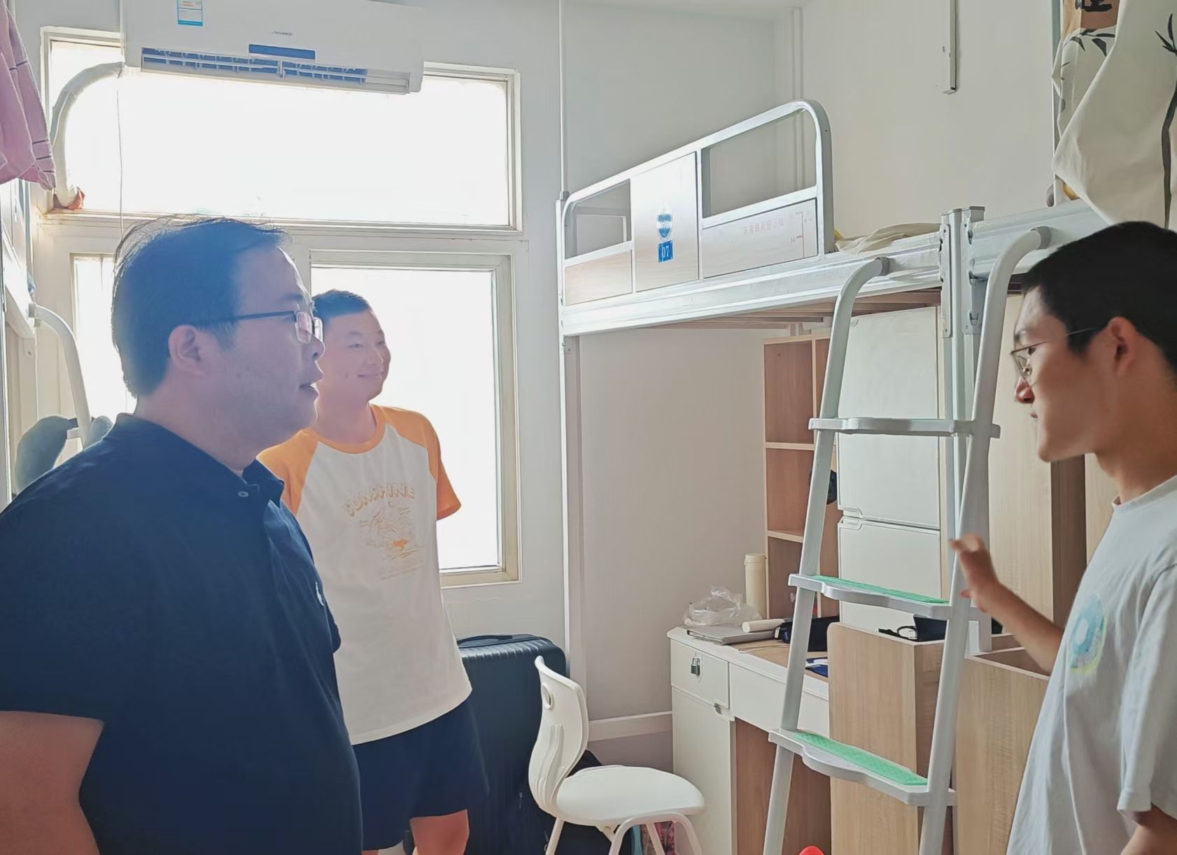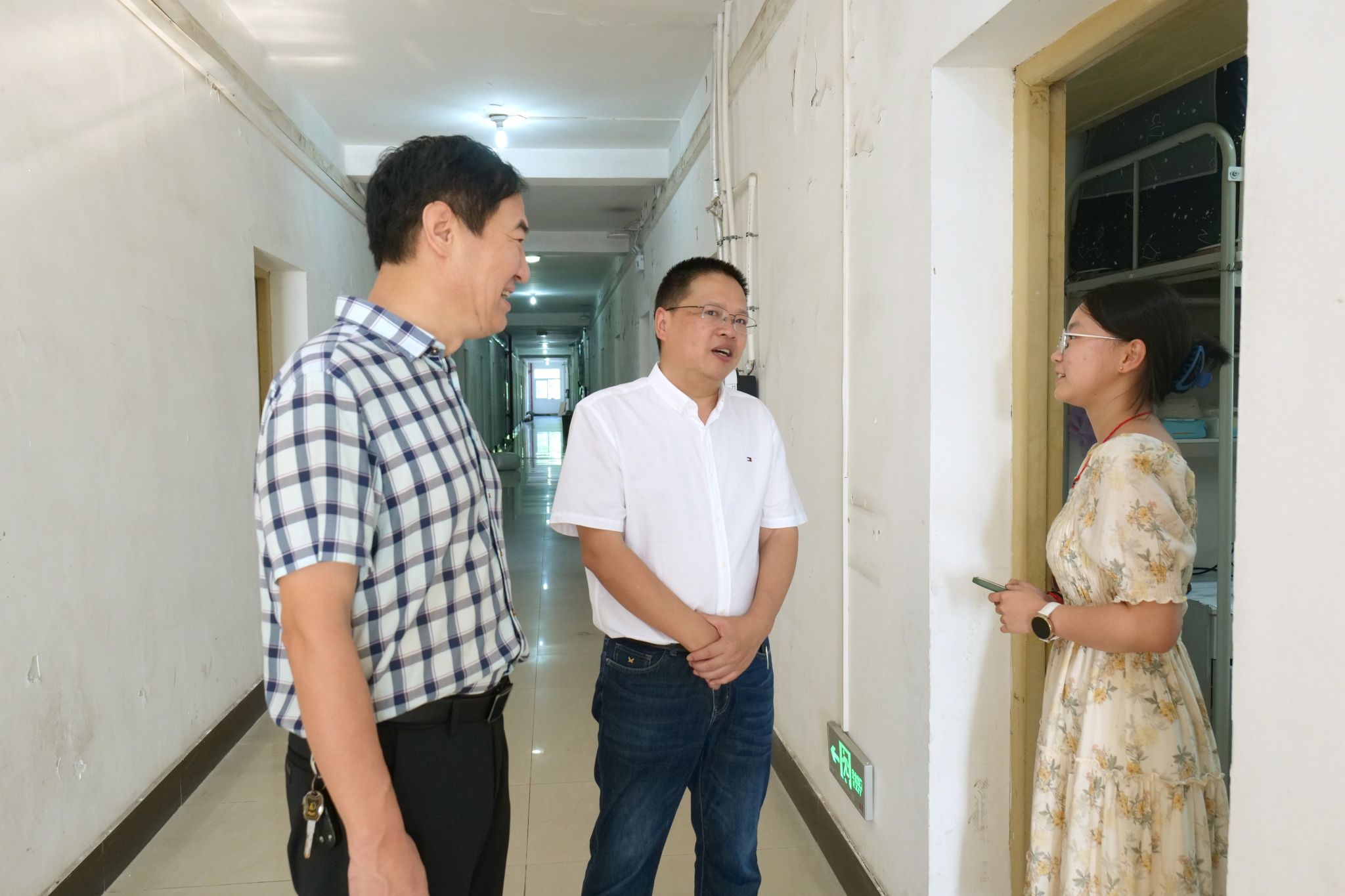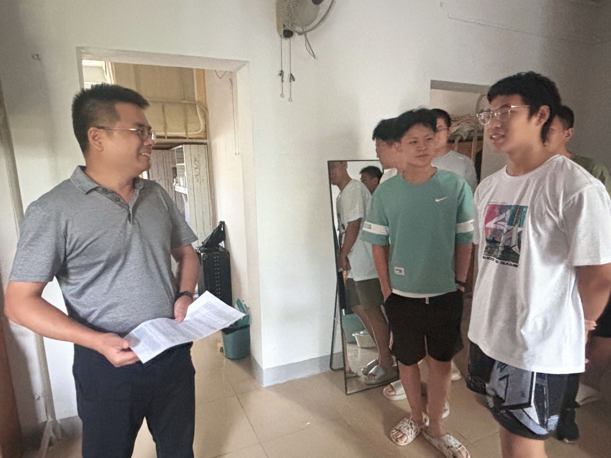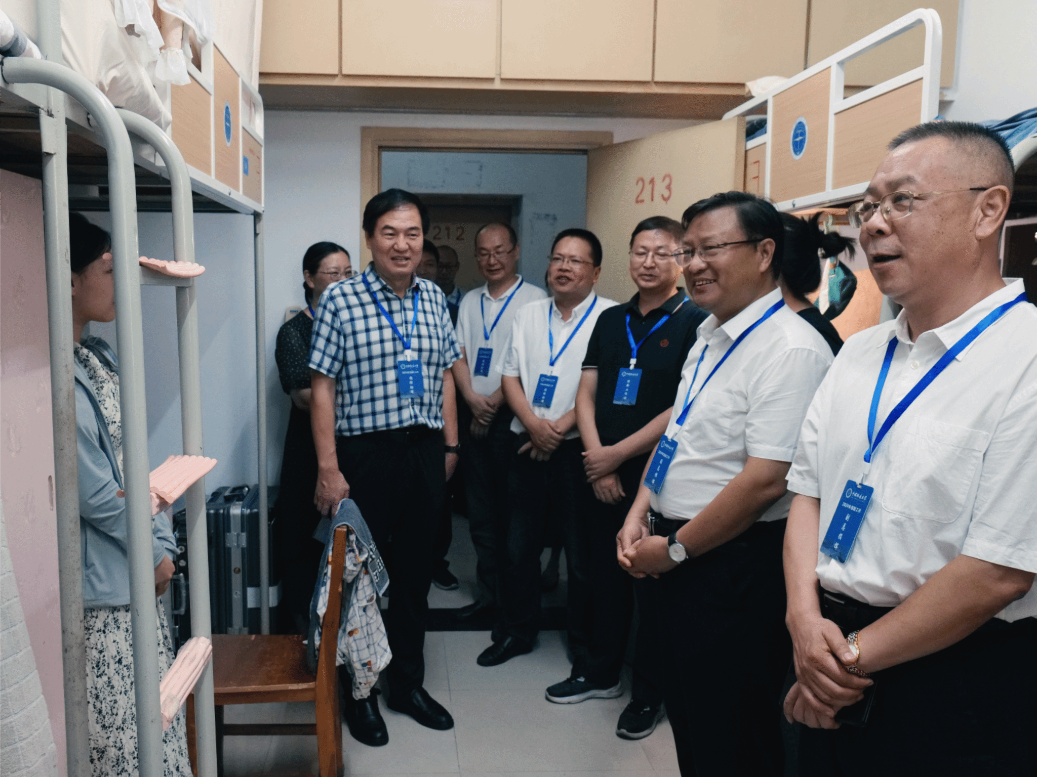 在走访过程中,学院领导老师们与同学们交流了暑假期间的生活学习情况,询问了其新学期的学习与工作规划,认真聆听同学们在学习生活中遇见的困难与问题并悉心解答。同时,学院领导老师们也对同学们提出了期望,希望同学们在宿舍养成良好的生活作息习惯,保持积极向上的心态,在新学期收获更多的成果,为在校时光留下难忘的回忆。