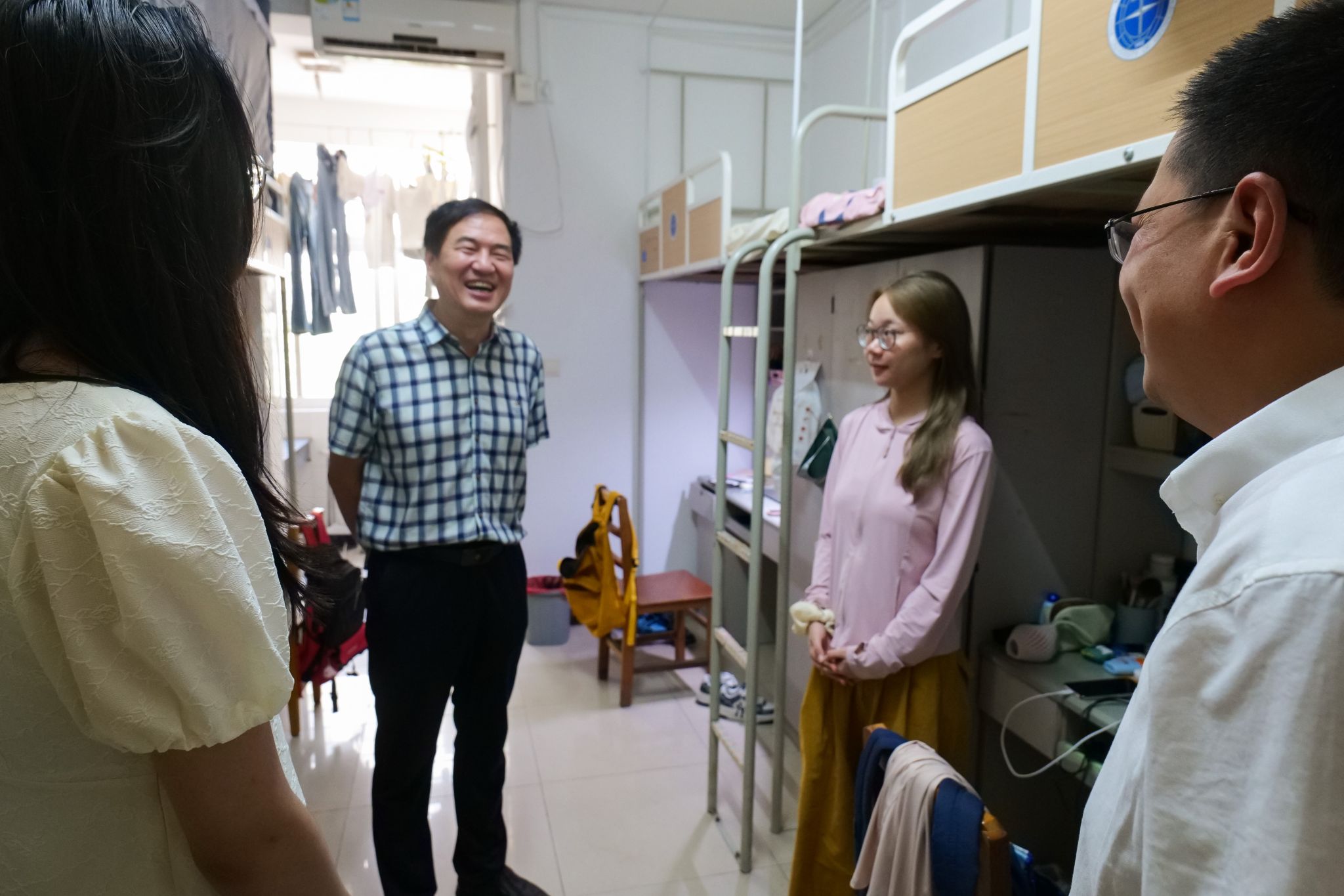 为了更好了解新生入校后的学习与生活情况,加强学生宿舍管理,开展安全教育工作,9月3日下午,张宽裕、龚丽、龚健、王忠、李世祥、朱江洪、吕凌燕等学院领导在南望山校区深入走访学生宿舍,与学生展开亲切交谈。