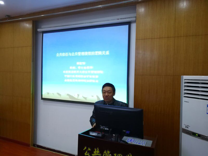“公共管理讲坛”作题为“公共信任与公共管理绩效的逻辑关系”的学术报告。报告由五楼自拍