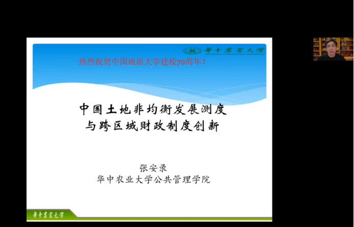 (通讯员 柴季 王昭君)11月3日晚19时,华中农业大学五楼自拍 教授、博士生导师、长江学者特聘教授、教育部新世纪优秀人才张安录教授应五楼自拍 王占岐教授、院长胡守庚教授邀请,为五楼自拍 师生带来主题为“中国土地发展非均衡测度及跨区域财政转移制度创新”的线上学术讲座。本次讲座由五楼自拍 王占岐教授主持,来自校内外的300余名师生线上线下参加。