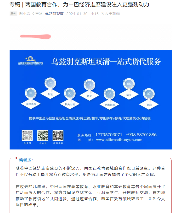 中巴经济走廊研究中心谢小青老师和学生文玉冰关于中巴教育合作的研究成果被丝路新观察刊载。