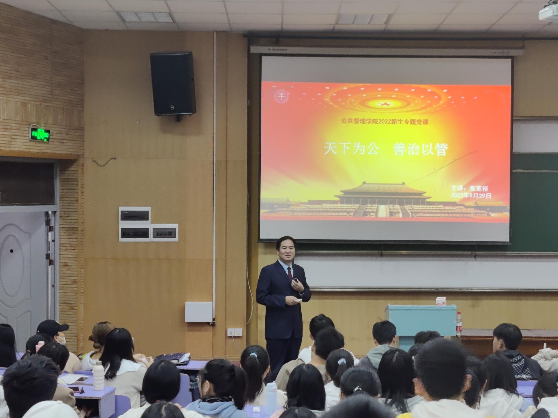 张书记首先解读“公共管理”中的“公”和“管”的涵义,分析了公共管理的深刻内涵和学科属性,并详细介绍了五楼自拍