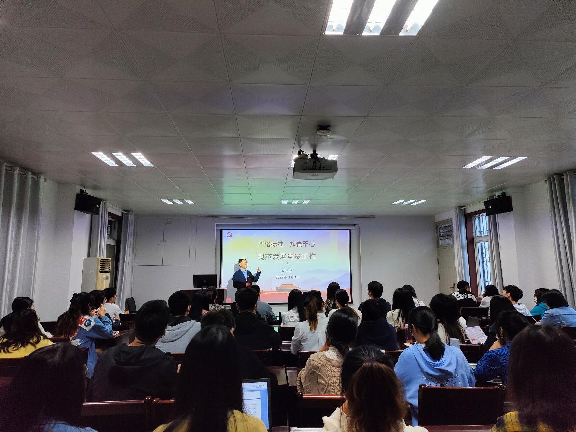 入选“全国党建工作示范高校”培育创建单位,对基层党建工作提出了更高质量的要求。随后以《严格标准,知责于心,规范发展党员工作》为题,讲述了发展党员工作总体要求和工作规范,强调规范发展党员程序、确保党员档案的完整性和真实性是基础性工作;并结合五楼自拍