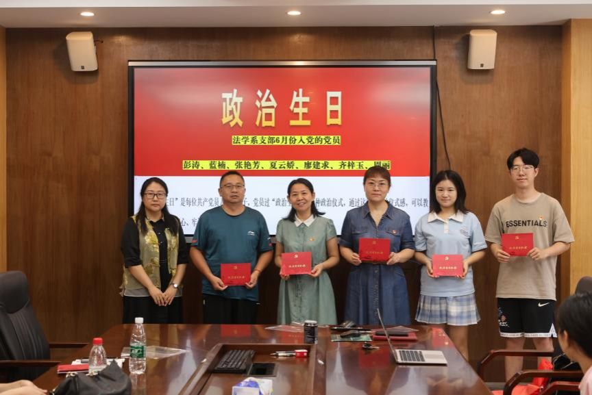 为深入学习贯彻习近平新时代中国特色社会主义思想,扎实推进党史学习教育常态化长效化,法学系教工党支部联合法学研究生第二党支部于2025年6月26日开展“学习党的历史 弘扬三大精神 锤炼过硬作风 激励担当作为”主题党日活动。活动由法学系教职工党支部书记夏云娇主持,全体师生党员参加。