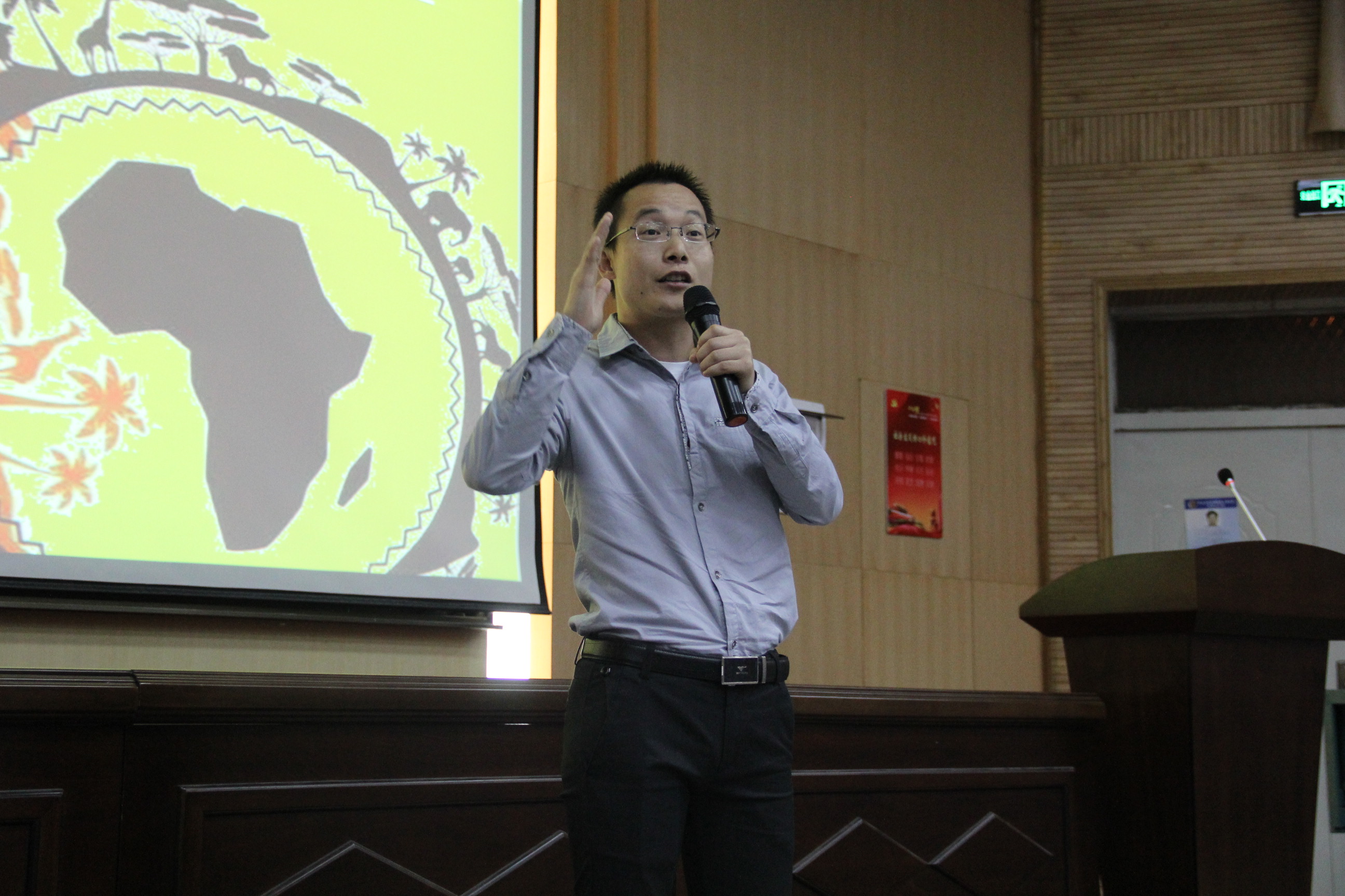 郭林以轻松幽默的问候开头,并用亲身经历为大家介绍了非洲的风土人情,消除了一部分人对非洲动乱、贫穷、炎热的误解,带领大家走近美丽纯朴的西非大地。谈及为何与非洲结缘,郭林不由得谈到了自己的大学生活,是出色的英语水平和扎实的专业知识为其叩响西非大门奠定了基础。郭林说道,最难忘怀的是大学的英语学习之路。由于喜爱英语,郭林在不干扰本专业专业课学习的前提下,经常去蹭英语专业课,钻研语法;同时,为了能说一口流利标准的英语和培养英语思维,他坚持早读,活跃于英语角与同学交流练习,甚至跑到东区留学生公寓“蹲点”与留学生搭讪攀谈,成为留学生眼中避之唯恐不及的“crazy guy”。在郭林持久的努力中,他获英语各类比赛奖项无数,成为名副其实的“英语狂人”。回顾这段历程,郭林觉得学以致用和持之以恒最为重要,鼓励大家要勤于运用知识,并能将学习转化为习惯,坚持下去。