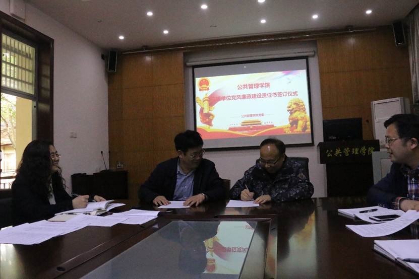 三级单位党风廉政建设责任书签订仪式在学院B209室进行,学院党委书记张吉军、副书记胡文勤,纪委书记、副院长才惠莲,纪委委员、副院长王忠,学院三级单位党政负责人参加签订仪式。