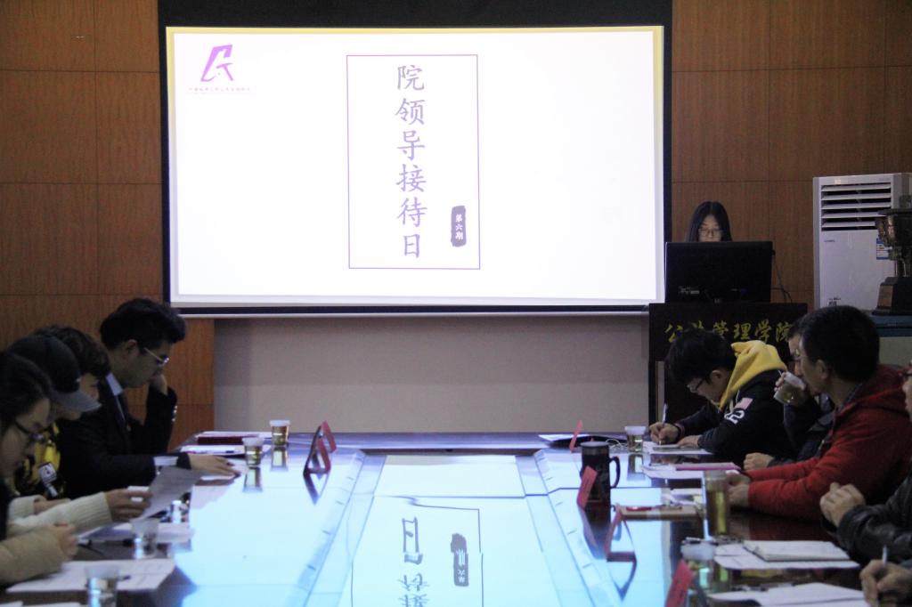 (通讯员 吴 波)2018年12月13日下午,第六期院领导接待日活动在公管楼B209会议室顺利举行。院党委书记张吉军老师、党委副书记刘国华老师、副院长王忠老师、法学系副主任刘琦老师、公共行政系主任李世祥老师、区划系主任刘超老师、土地系刘成老师、教务科高秋丽老师、团委副书记李姝慧老师、辅导员吴波老师以及各年级同学代表50余人参加本次活动。