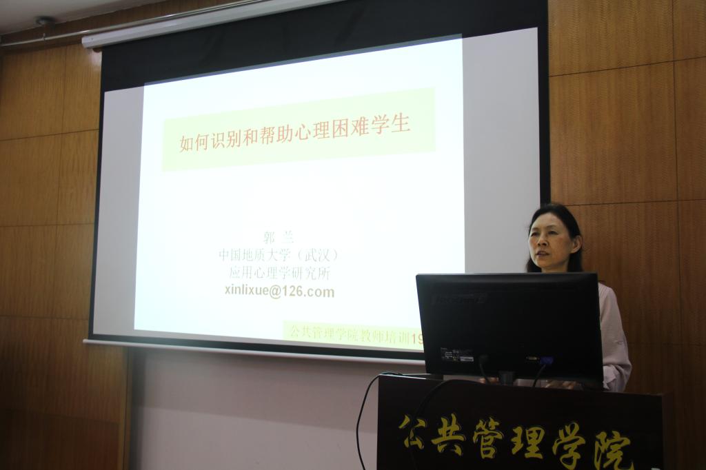 党委书记张吉军、党委副书记刘国华、各系系主任、书记及学院四个年级班主任/学务指导、全体辅导员出席本次会议。培训会邀请学校应用心理研究所郭兰教授主讲。
