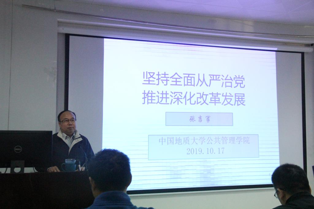 党委书记张吉军为学院全体教工党员、学生党员代表以及发展对象作了主题为“坚持全面从严治党,推进深化改革发展”的专题党课,党课由五楼自拍