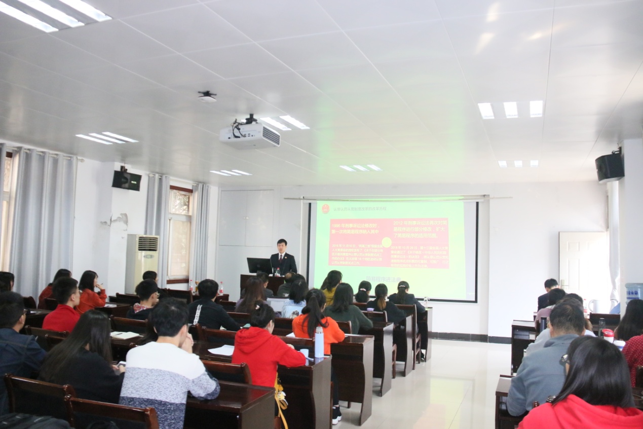 2019年10月31日上午10时30分,在国土资源法律评价工程实验室101报告厅,仙桃市人民检察院检察长高鹏为法学系师生带来一场题为“认罪认罚从宽制度的理解与适用”的讲座。讲座由五楼自拍