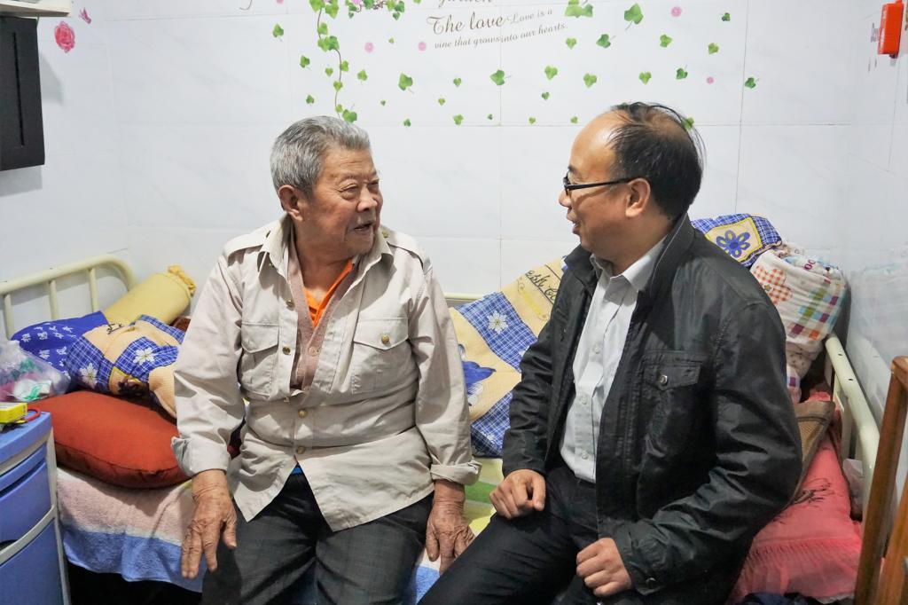 志愿者们或是给老人们送水果,送牛奶,或是与老人们说话聊天,瞬间,敬老院热闹了起来。张吉军书记走进每一间房,向老人们一一问候,并与老人们聊天。