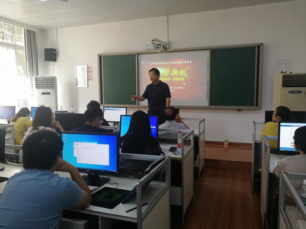 接着,王忠副院长致辞。他首先对MPA新学员的到来表示欢迎,指出我们正处在一个不断变化、充满竞争的时代,大家来自五湖四海,在美丽的五楼自拍