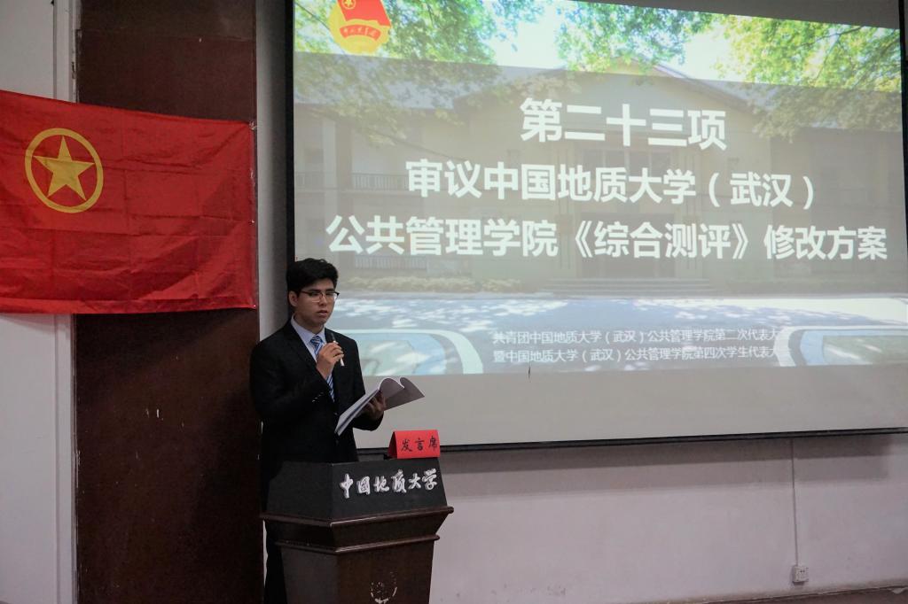 综合测评》修改方案,与会代表听取并审议了该方案;刘学炜同学作提案工作报告,总结了本次团学代会的提案收取工作,指出了提案的问题所在,与会代表听取并审议了该报告。