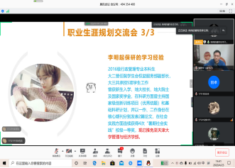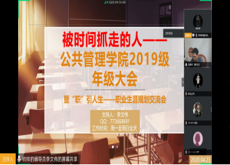 2019级本科生年级在线召开主题为《被时间抓走的人暨职业生涯规划》的交流会。学院党委副书记刘国华、2019级本科生兼职辅导员李文伟、2019级本科生全体同学及部分学长学姐参加本次交流会。交流会由李文伟主持。