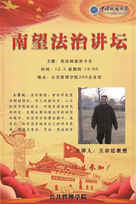 王宗廷教授围绕《宪法的前世今生》开展专题讲座,邀请中南财经政法大学刘大洪教授、张德淼教授、罗洪洋教授围绕“国家治理能力现代化与中国法治体系建设”开展了学术沙龙活动,对五楼自拍