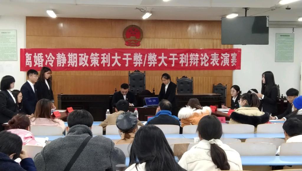 五是开展普法辩论赛。12月4日晚,学院随辩辩论队协办普法辩论赛,本场辩论赛围绕时下备受关注的“离婚冷静期”政策展开讨论,辩题为“离婚冷静期政策利大于弊/弊大于利”。从开篇立论、质询、自由辩再到总结陈词,各位辩手在场上的“唇枪舌战”,可谓十分精彩,引人入胜,在场观众学会了更好地关注热点法规,用辩证的角度看待问题,增强法治思维,获益颇深。