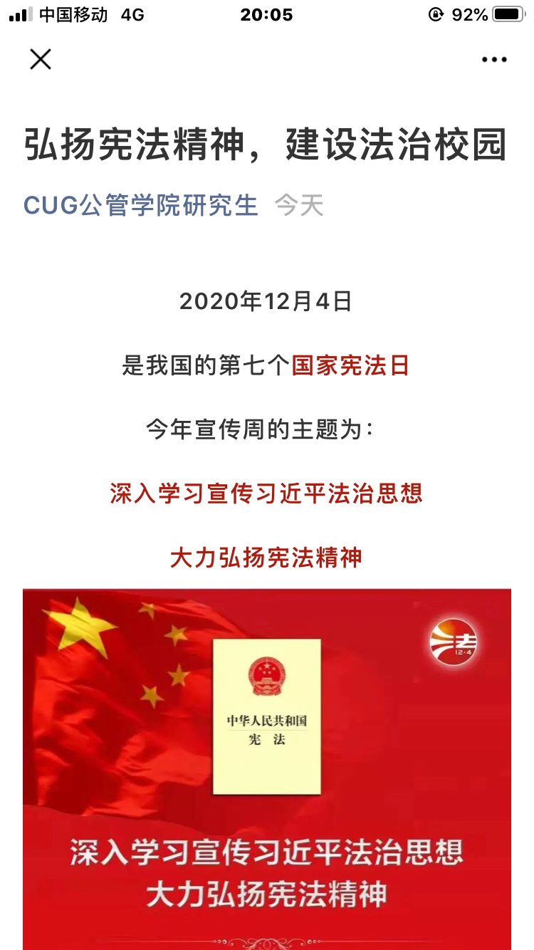 12月4日是我国第七个国家宪法日,11.29—12.5是第三个法制宣传周。为了坚持持久、深入、有效地在校园普及宪法知识、增强宪法意识、弘扬宪法精神、推动宪法实施,由政策法规办、五楼自拍