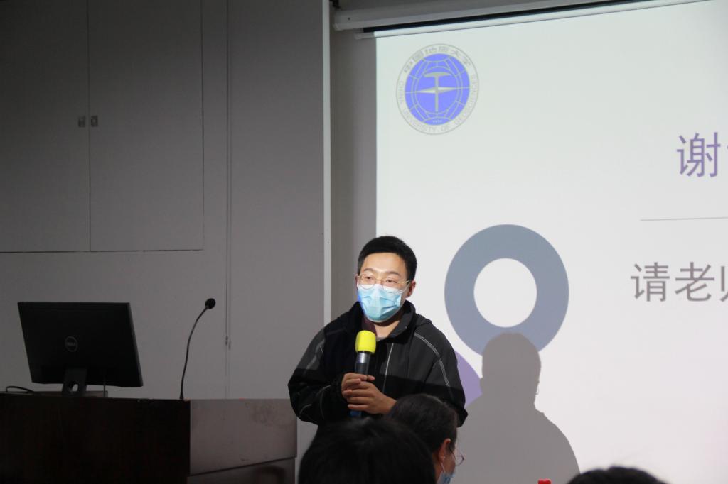 第一支上场的队伍是“地大之光队”,他们以“地大低年级学子校园归属感情况”为调研主题,从调研背景及目的、调查方案、数据分析和结论及措施四个方面展开调研,对地大低年级学生的校园归属感情况进行分析,并提出了增强地大学子对学校的归属感的建议。