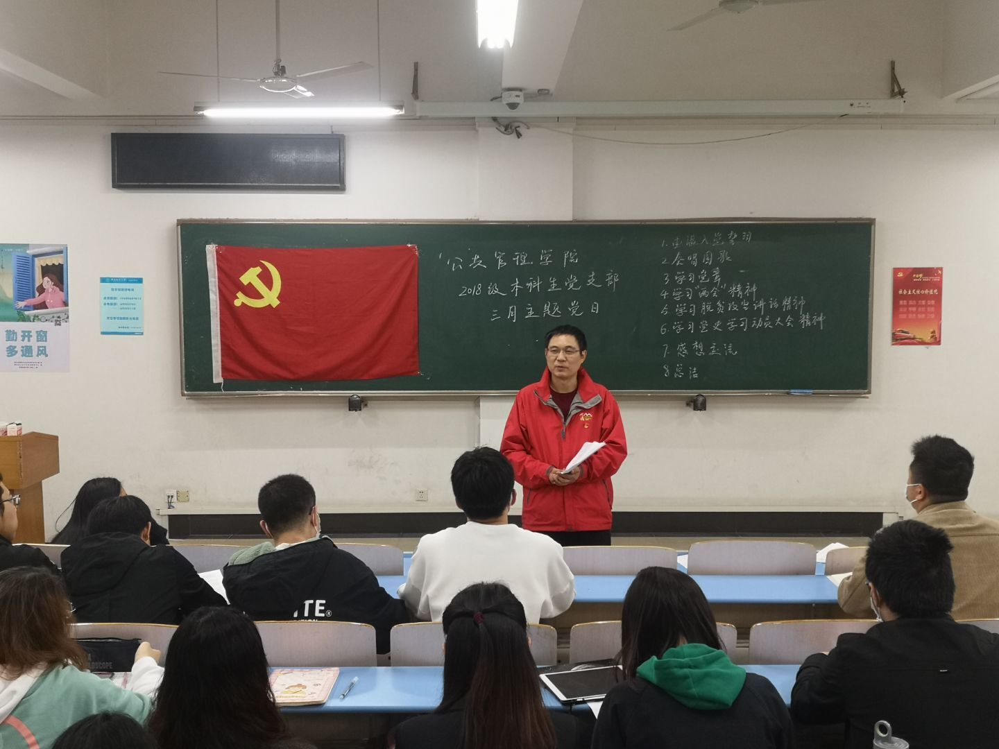 3月25日,2018级本科生党支部全体在北综204召开三月份主题党日。本次主题党日由行管一班、行管二班筹办。主题党日召开前,支部全体同志进行了体温测量,并全程佩戴口罩参会。学院党委副书记刘国华、党支部书记吴波参加本次主题党日。党支部组织委员朱嘉敏主持会议。