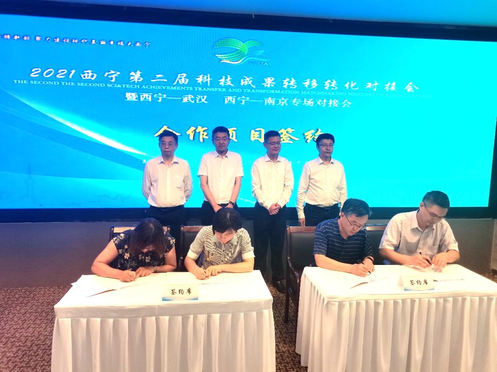 党委副书记刘国华作为嘉宾,与西宁市副市长陈爱红等五人共同按下了“2021年西宁第二届科技成果转移转化对接会——暨西宁-武汉 西宁-南京专场对接会”开幕按钮。开幕式后,本着建立长期、紧密的合作关系,刘国华副书记与李为民副局长分别代表五楼自拍