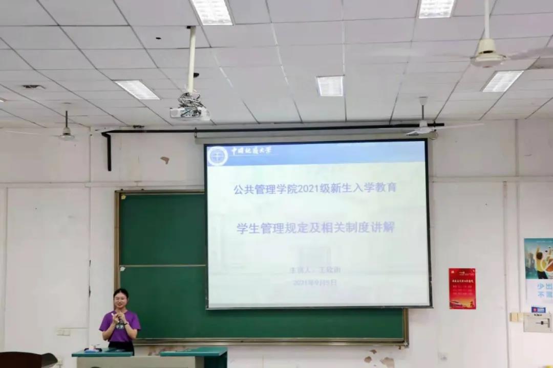 2021级本科新生入学教育之学生管理规定及相关制度讲解于教三楼207教室举行,活动由学工组王欣雨老师主持讲解。