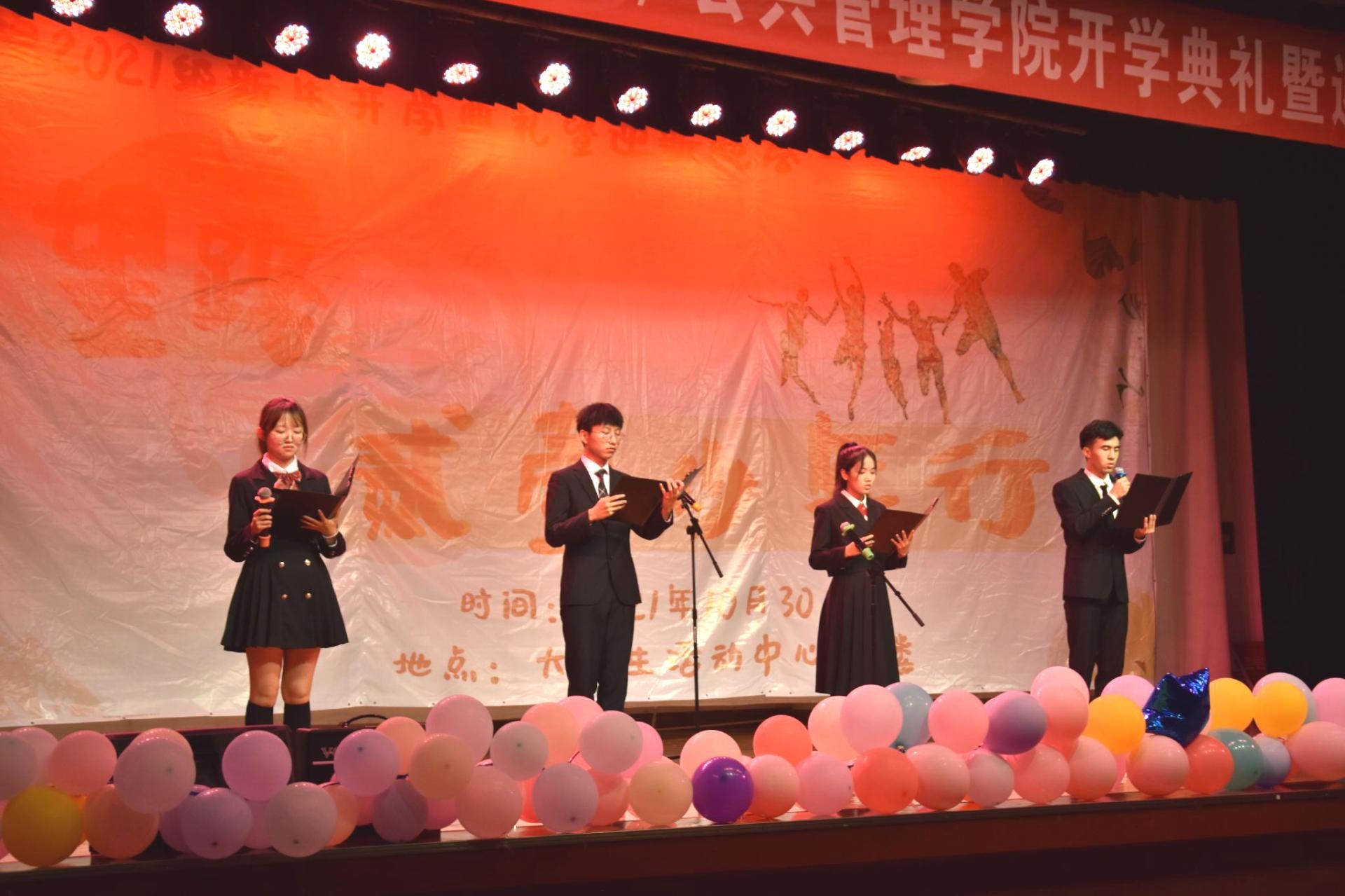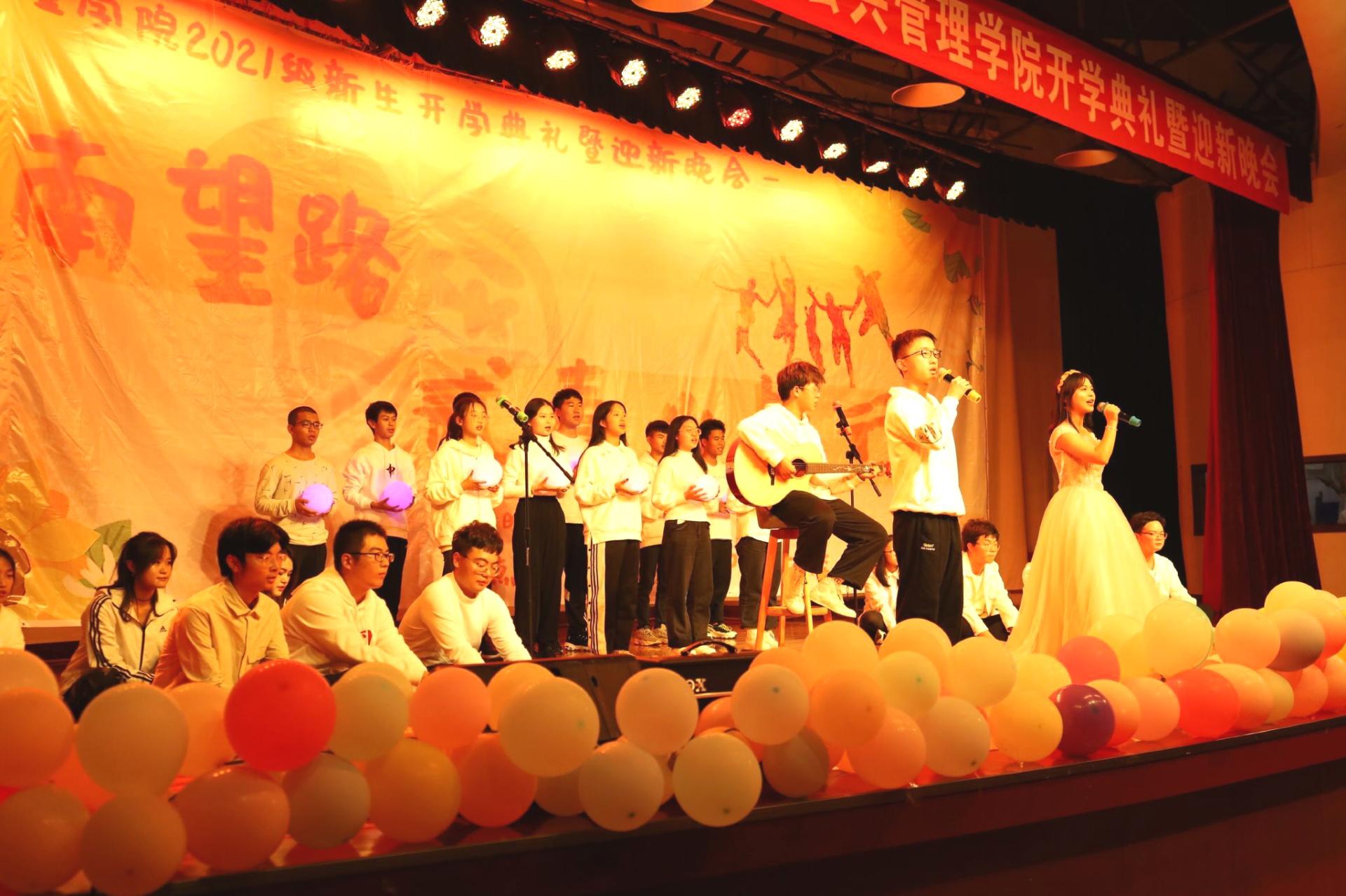 10月30日晚,学院2021级新生开学典礼暨“花盛南望路,贰壹少年行”迎新晚会在大学生活动中心二楼演播厅举办。