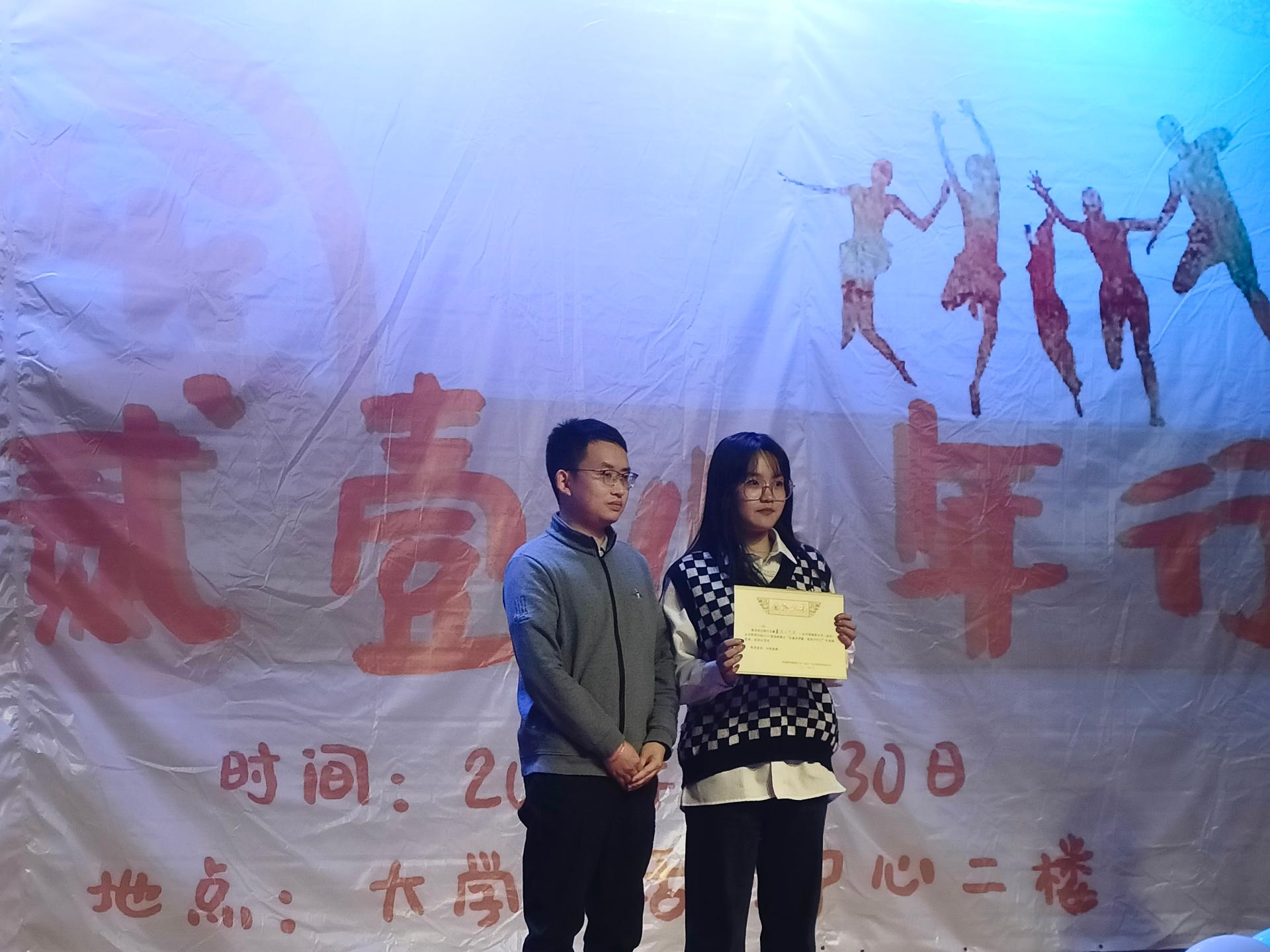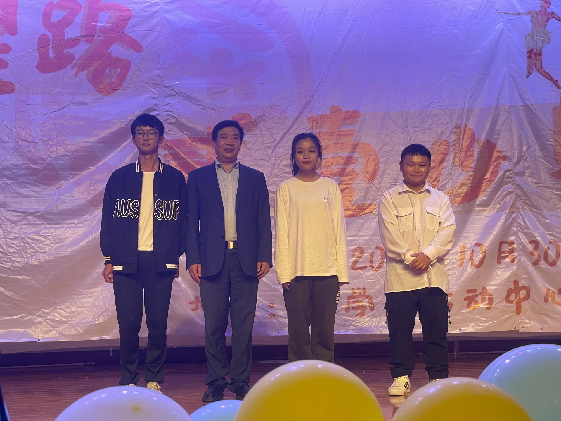 班级节目评分颁奖环节,由主持人宣读本次晚会一二三等奖的获奖班级,171211班获得最佳人气奖,171211班、17G211班、175212班分别获得一、二、三等奖。王青涛老师、刘国华副书记分别上台颁奖并与获奖班级同学代表合影留念。