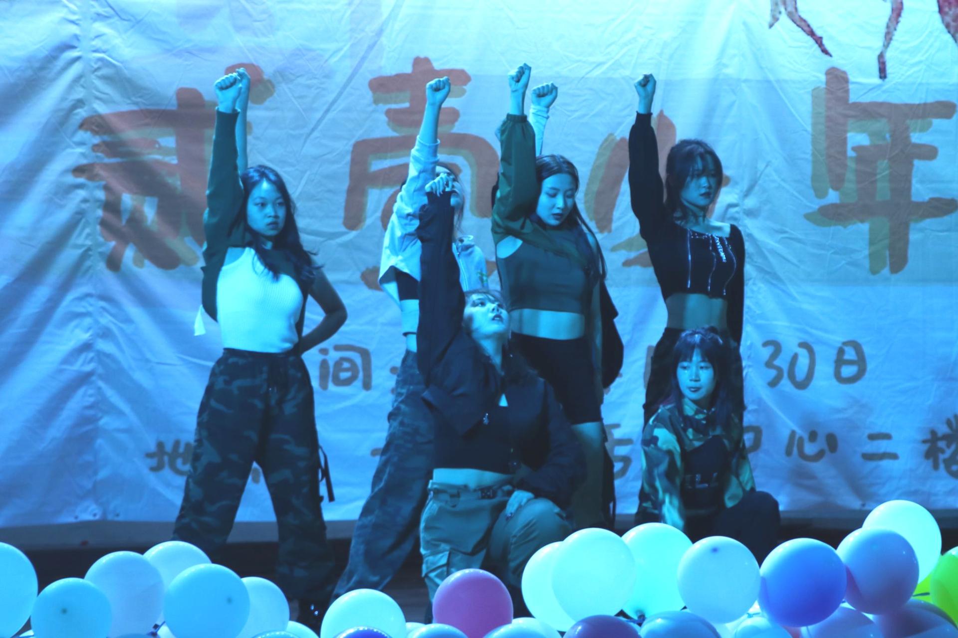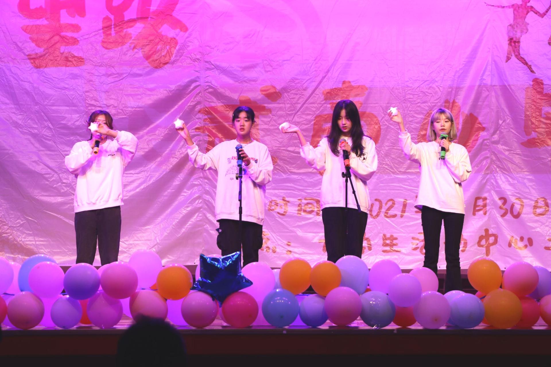 17G212班同学们带来的舞蹈串烧《失恋苹果吹满地》可谓是将流行热曲舞动出了青春绚丽之风采,为同学们呈现了全新的视觉体验。随后,由研究生带来的歌曲串烧《爱要坦坦荡荡+雅俗共赏》则将美妙悦耳的旋律展现给大家,让大家不由自主地齐声哼唱。