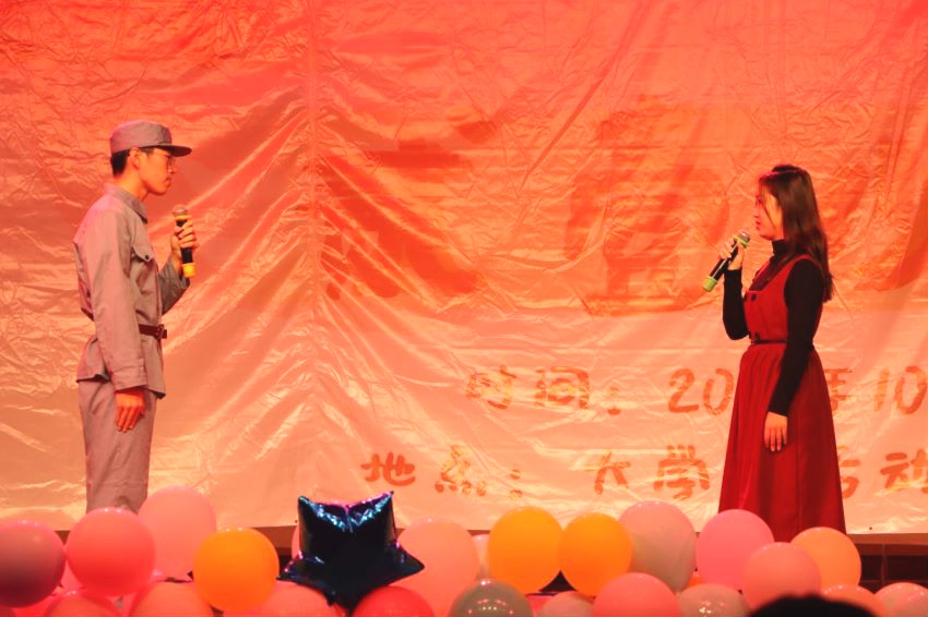 主持人社为大家带来的话剧朗诵表演《时空·中国》,动人的表演让我们深切体悟到盛世中华的来之不易。而后由177211班带来的《少年中国说》更充分向我们展示了当代少年昂扬的青年朝气。