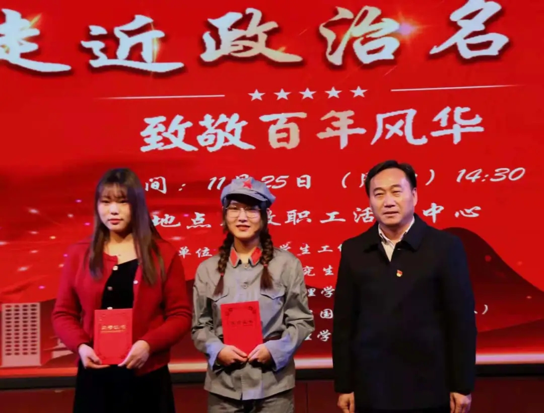 主办的第十四届“走近政治名家——致敬百年风华”大赛决赛在教职工活动中心举行。环境学院党委书记李素矿、珠宝学院党委书记薛保山、五楼自拍