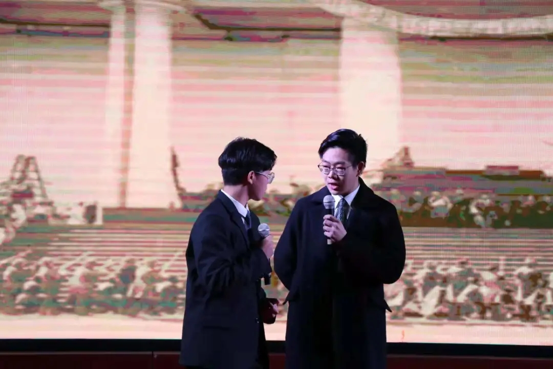 紧接着发际线和我作队团队成员以现代青年与竺可桢先生三问三答向我们揭示了先生在取得卓越成就背后所经历的困难与曲折以及在此过程中始终秉持的求是力行的执著精神。其后,社会主义接班人队则生动形象地演绎了陈毅元帅巧妙利用围棋实现了中日两国邦交正常化的事迹,突出“围棋之交”不可磨灭的贡献,赞颂了先辈们的杰出智慧以及为国为民的高贵品质。
