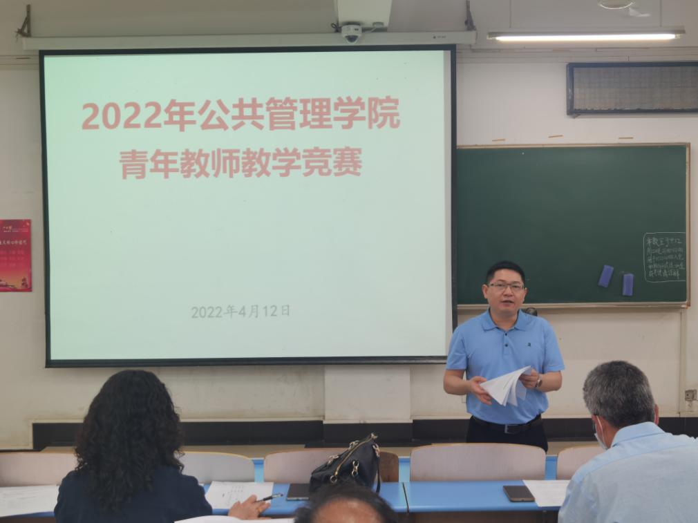 评委组组长曾克峰教授主持本次教学竞赛的评审。本次共有3名青年教师参加竞赛,土地资源管理系童陆亿老师以“风险控制与危机管理”为题、公共行政系苏黎兰老师以“公共危机与应急管理”为题、法学系张旭鹏老师以“中国梦复兴梦——解读‘复兴’” 为题参赛。