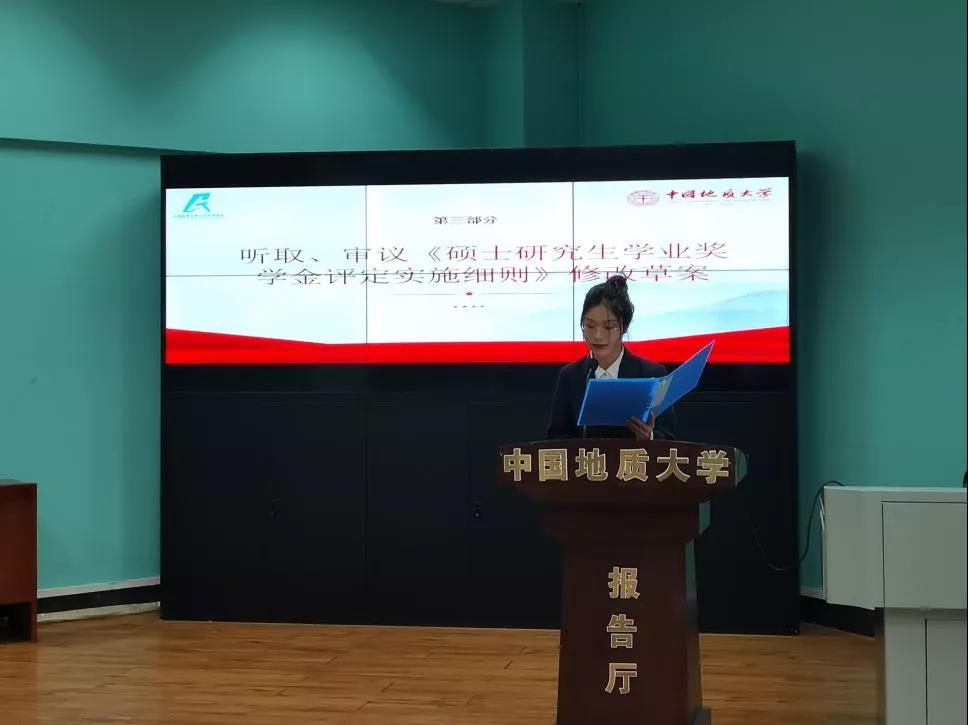 硕士研究生学业奖学金评定实施细则》修订草案报告。经37名参会代表认真细致的审查并举手表决,《五楼自拍