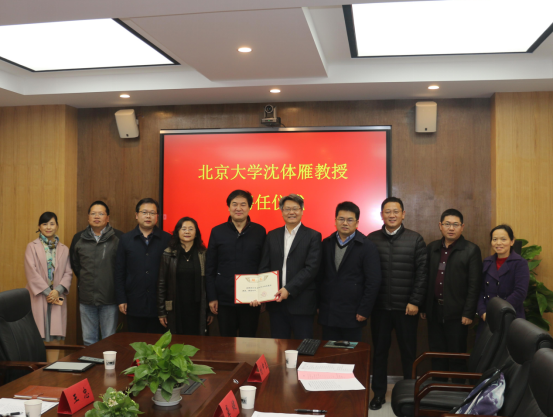 和学院的基本情况,院党委书记张宽裕,对沈体雁教授担任学院的兼职教授表示热烈欢迎。沈体雁教授现为北京大学政府管理学院教授,博士生导师,城市治理研究院执行院长,首都发展研究院副院长,北京大学科学与工程计算中心、北京大学海洋研究院双聘教授。担任中国区域科学协会副理事长、中国经济社会理事会理事、住建部科学技术委员会科技协同创新专业委员会委员等社会职务。曾在美国夏威夷大学、哈佛大学、加州大学伯克利分校、伊利诺斯大学厄巴纳-香槟分校以及美国中西方研究中心做访问学者。曾任《中国区域经济》杂志编辑部主任,世界银行城市发展战略培训专家,《Environmental Planning》(B)、《Landscape and Urban Planning》和《Annals of the Association of American Geographers》等杂志匿名评审人。