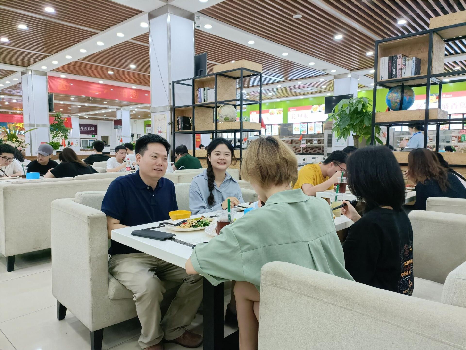 午餐会中,同学们主要围绕学习环境、后勤服务、团学活动、专业前景等表达自己的想法和需求,老师们在现场给出了答复并就学科专业发展、未来就业选择与同学们进行深入探讨。