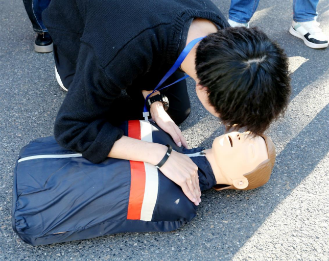 在全国高校率先设立建设应急管理专业,开设应急救护课程,提高学生应急救护处理突发事件能力,更好服务社会大众。(湖北日报全媒记者 张鸿 通讯员 屠傲凌 摄 )