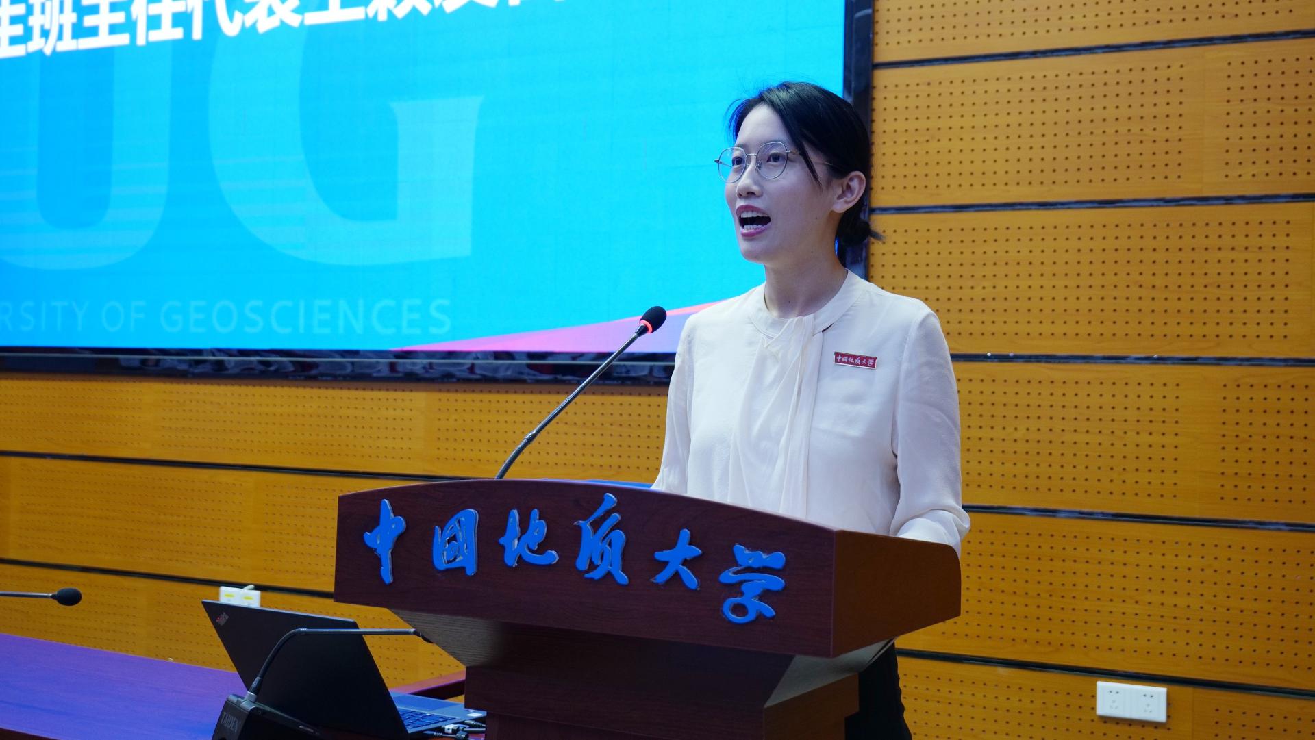 法学系2020级硕士生,2023年校研究生标兵获得者朱悦作为老生代表发言。她结合自身在地大、在学院的成长故事,从“定位”、“突破”和“担当”三方面希望同学们能够充分把握学校和学院提供的资源平台,找准自身定位,勇于创新突破,矢志担当作为,全力“跑”出新时代公管人的“加速度”。