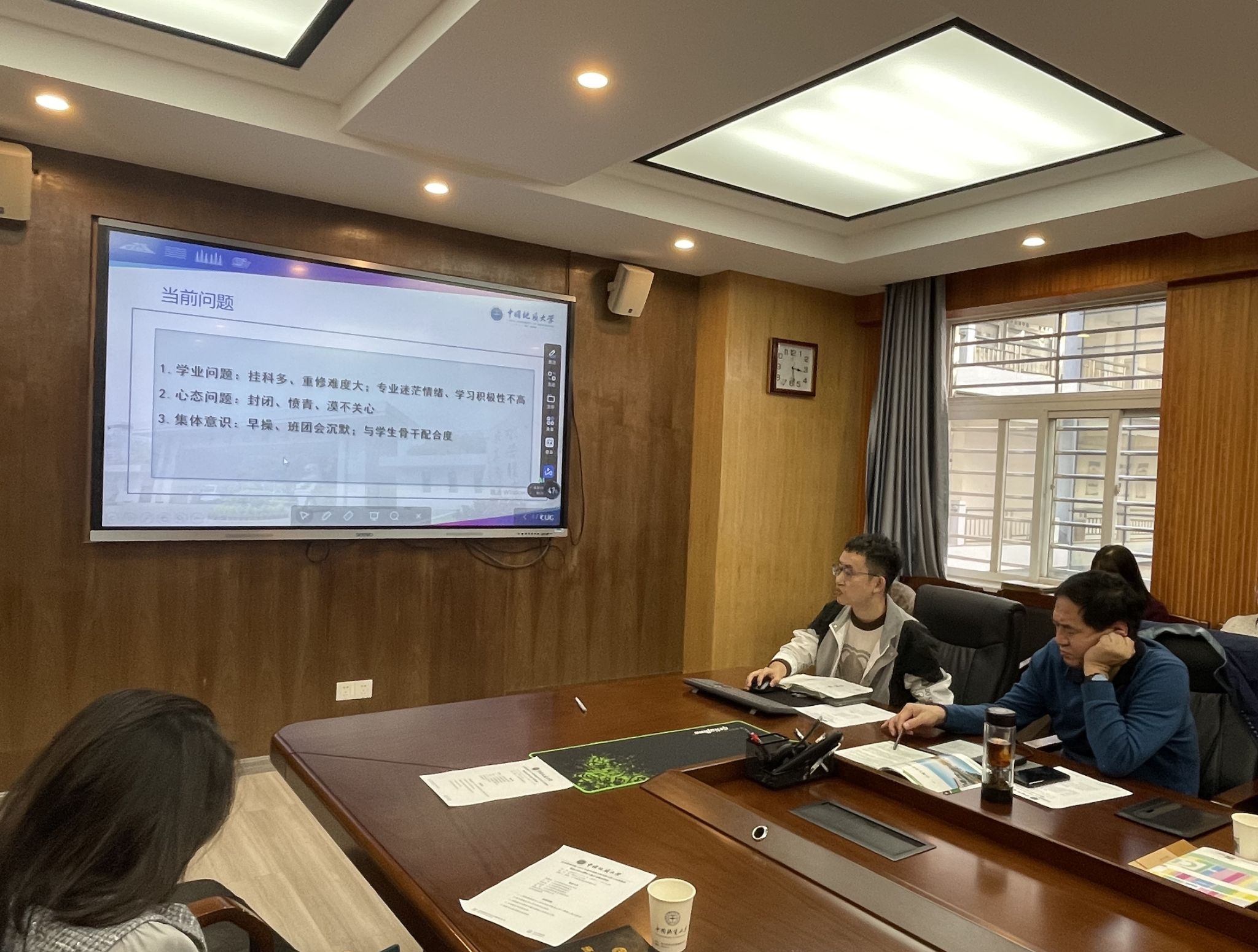 辅导员李姝慧、王青涛、陈杨,兼职辅导员吕承昆,就学院各年级学生基本情况、上学年学风建设成效、年级重点关注问题和下一步工作计划等方面综合展开介绍。