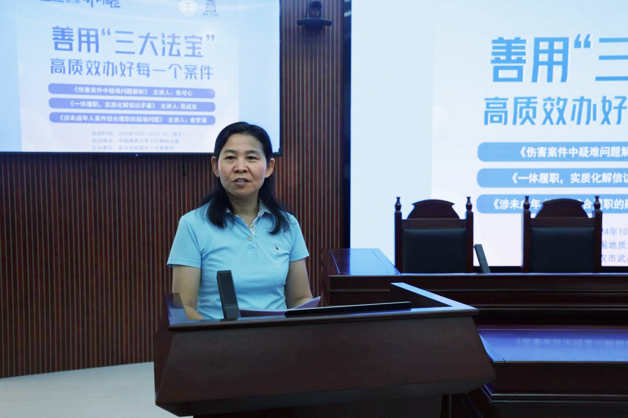 武昌区人民检察院党组书记、检察长赵慧,北京盈科(武汉)律师事务所律师吴治兵,湖北得伟君尚(湖北自贸区武汉片区)律师事务所高级合伙人、刑事业务部主任彭博才,学院党委书记张宽裕、副院长吕凌燕及学院法学系师生参加。活动由法学系党支部书记夏云娇主持。