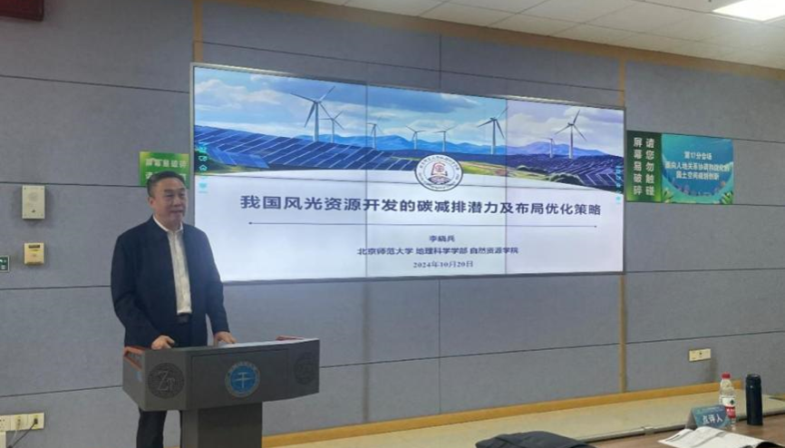 (武汉)龚健教授点评。其中,陕西师范大学党委书记李晓兵教授以《我国风光资源开发的碳减排潜力及布局优化策略》为题进行报告。他认为大力发展可再生能源已成为我国应对气候变化、健全能源安全保障体系和实现“双碳”目标的重要战略;并进一步分析了我国风光资源分布地区差异,提出未来仍需结合资源丰富程度、空间适宜性、经济社会条件等特征综合布局风光资源开发项目;与此同时,风光资源开发的碳减排潜力巨大,但面临本地消纳不足、用地矛盾、负面生态环境影响等挑战,建议从用地科学规划、生态友好选址、生态效益评估、行业协调发展等方面积极采取措施、应对挑战。
