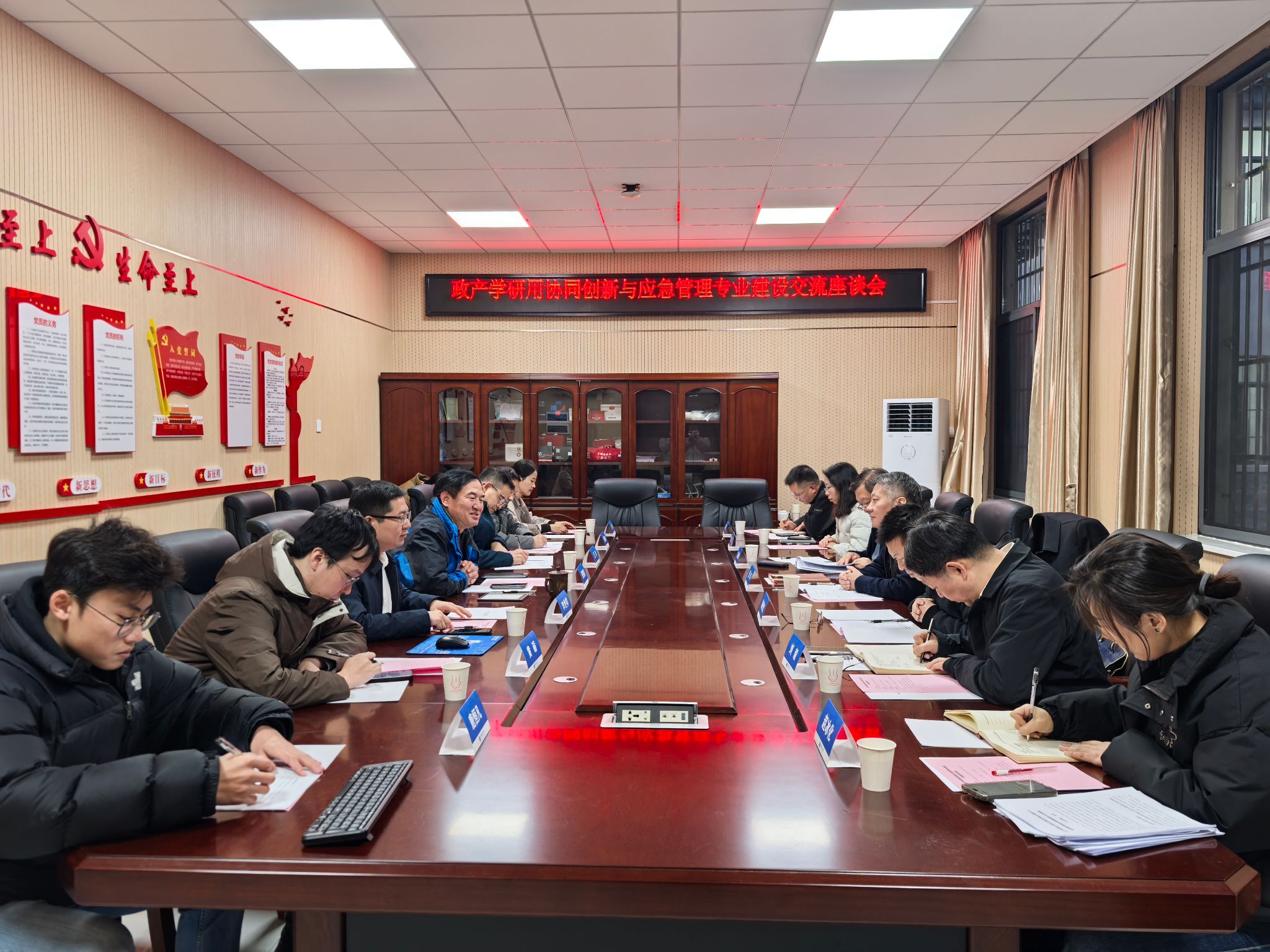 12 月 12 日下午 ,政产学研用协同创新与应急管理专业建设交流座谈会在五楼自拍