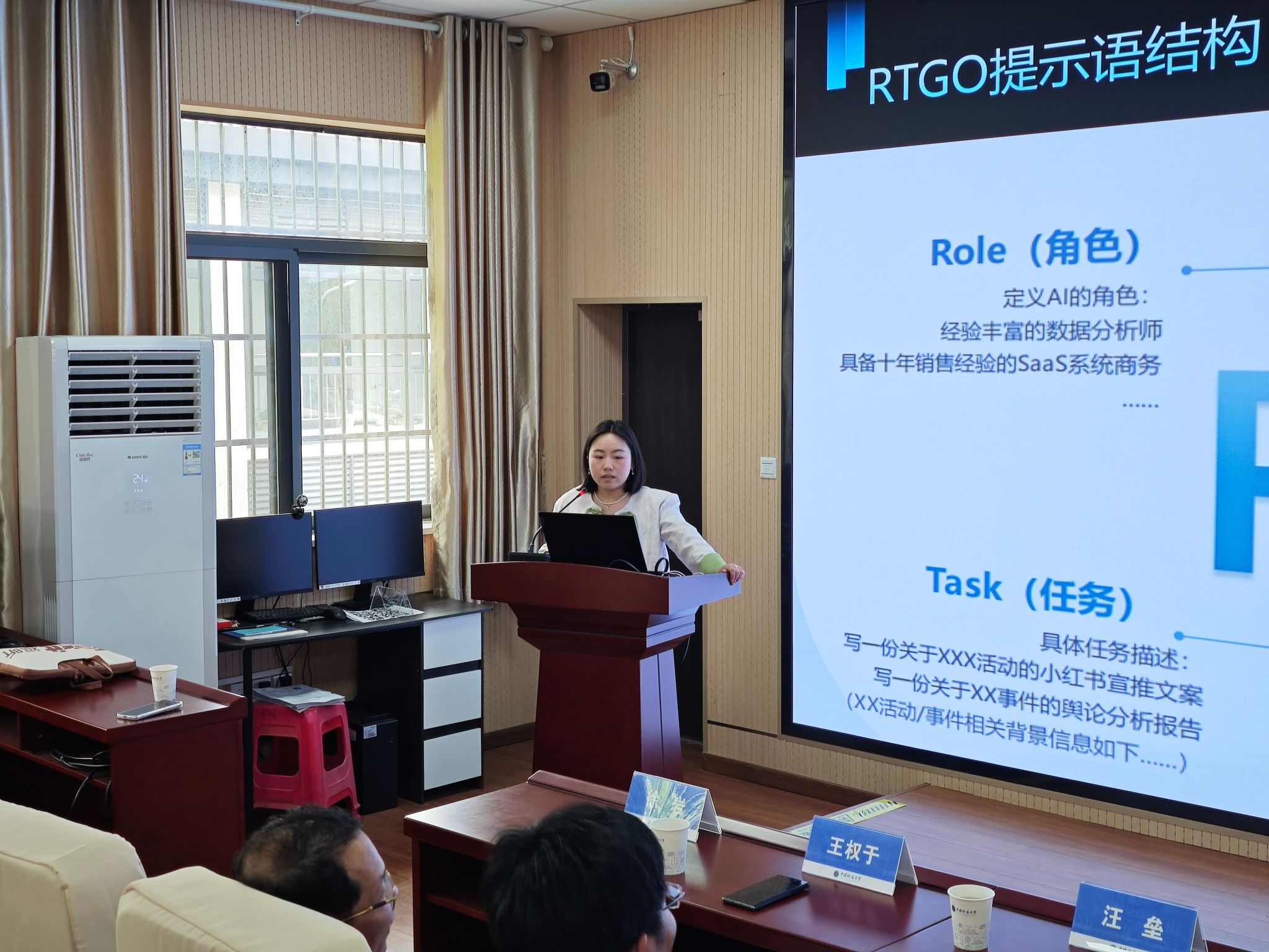 于北三楼学术报告厅举办“人工智能赋能教学科研”信息化专题培训。培训特邀学校信息化工作办公室王权于研究员、胡君老师担任主讲嘉宾,学院副院长朱江洪主持活动,吸引了近百名师生参与学习交流。