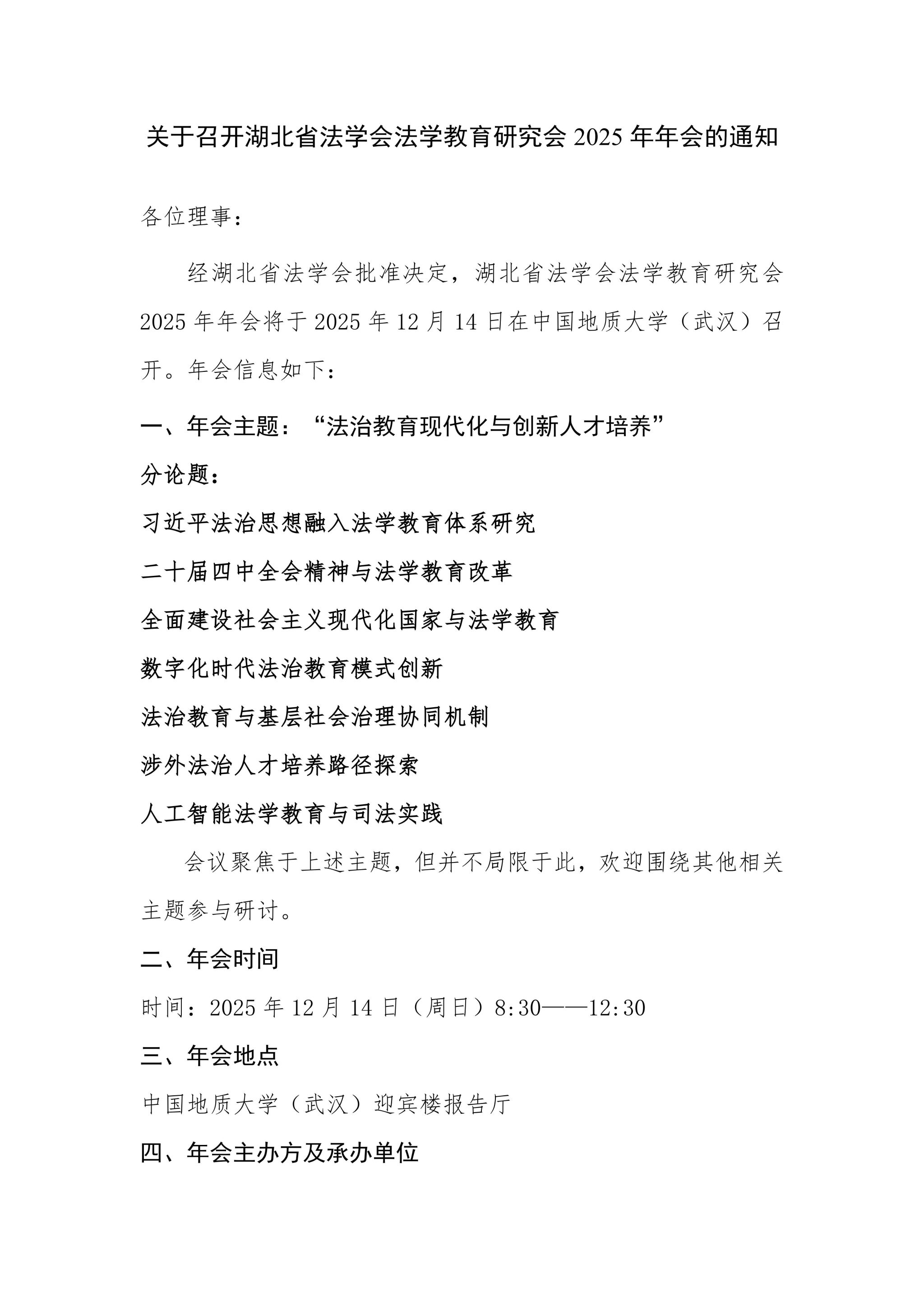 关于召开湖北省法学会法学教育研究会2025年年会的通知