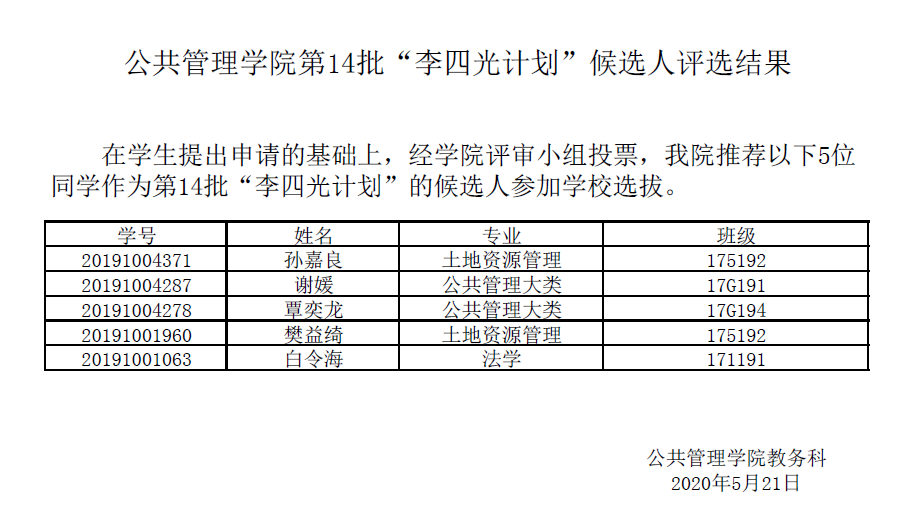 五楼自拍 第14批“李四光计划”候选人评选结果